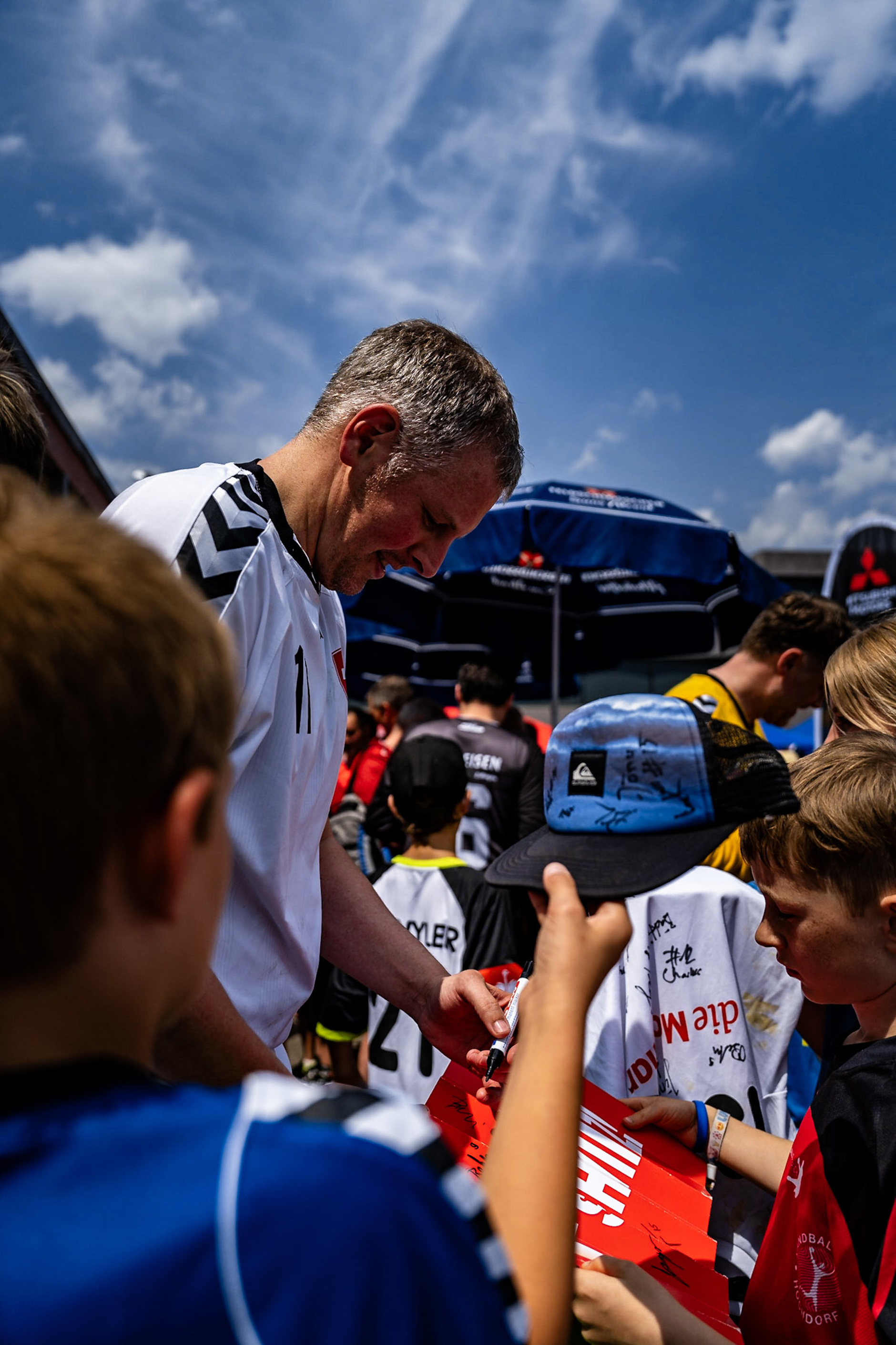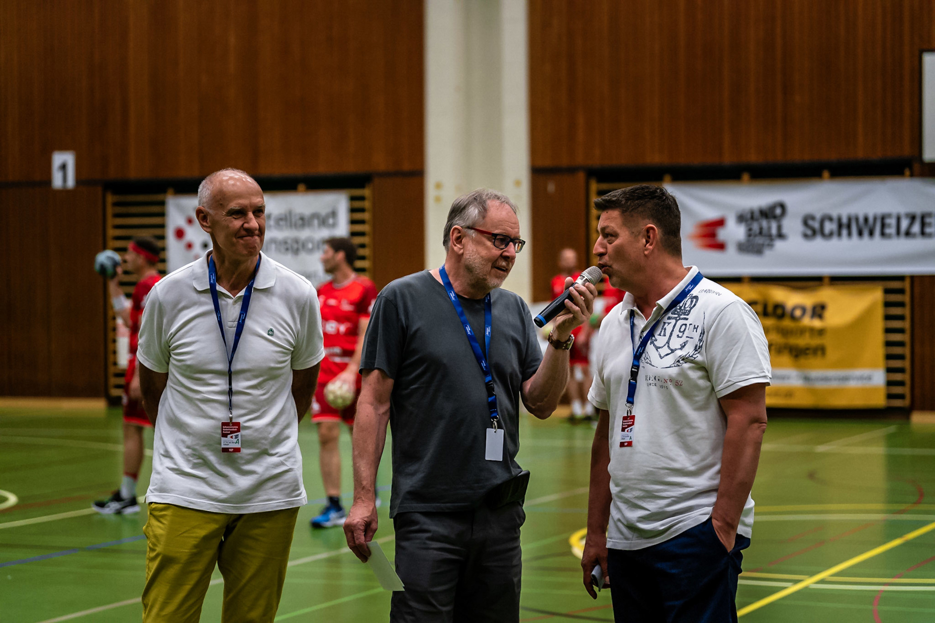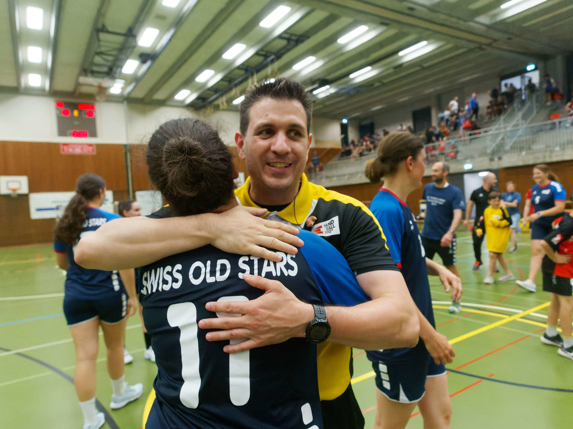 Die Swiss Old Stars und eine Auswahl des Festival-Veranstalters BSV Bern standen sich am Kinderhandball Festival 2025 in Gümligen gegenüber. Neben spektakulären Toren durfte auch die folgende Autogrammstunde nicht fehlen.