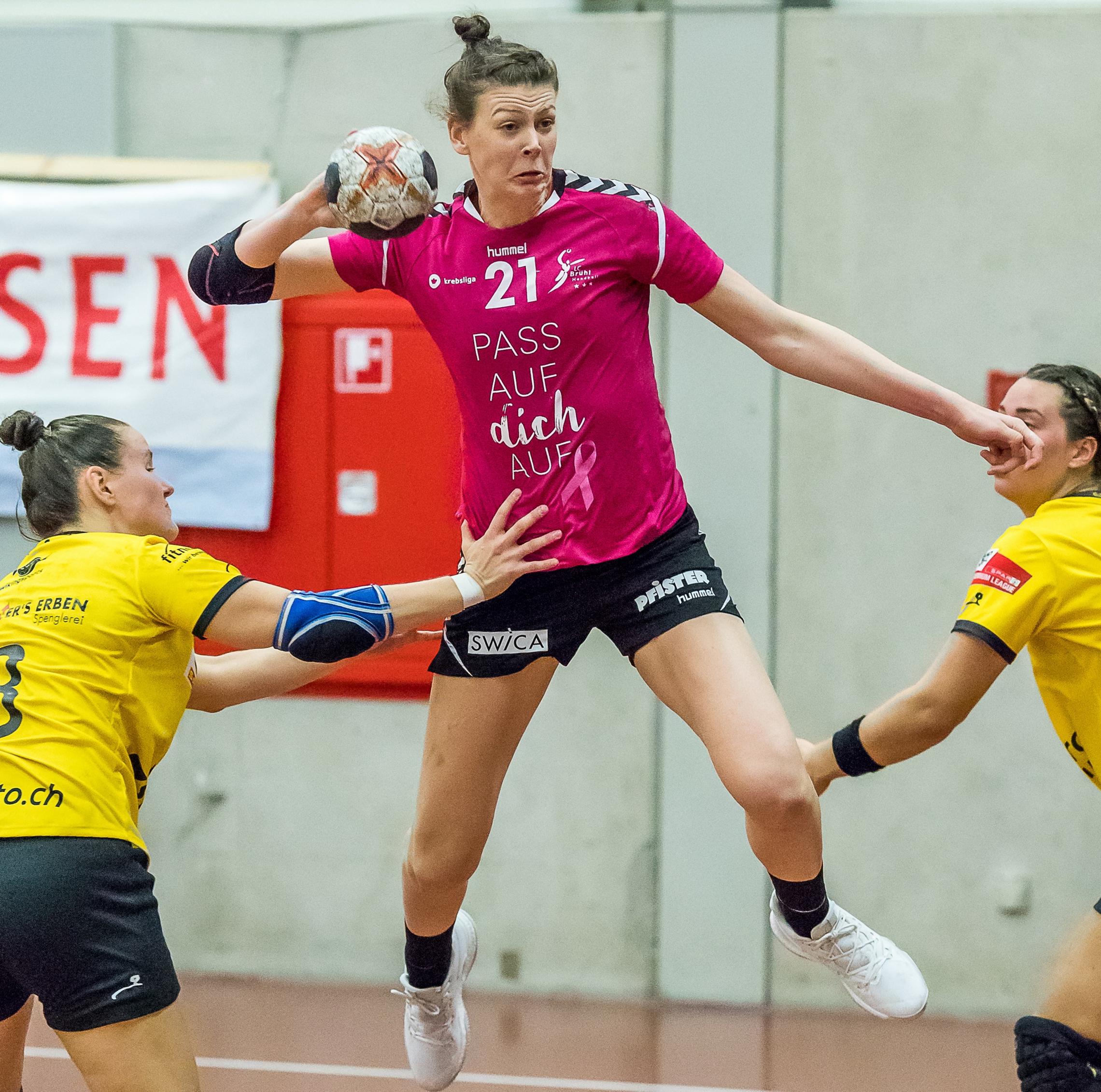 Beim Stand von 5:12 nach 22 Minuten deutete in Therwil vieles darauf hin, dass sich die Geschichte vom 1. Spieltag wiederholen sollte, als Brühl klar und deutlich gegen die Aufsteigerinnen gewann. Die Gäste liessen beim Debüt von Neo-Coach Rolf Erdin aber im zweiten Abschnitt die nötige Konsequenz vermissen, gleichzeitig zeigten sich die Gastgeberinnen, wie schon in den zwei Spielen zuvor, formverbessert. Das führte dazu, dass Leimental zwischen der 43. und 53. Minute von 14:21 auf 21:23 verkürzen konnte. Die komplette Wende sollte der HSG dann aber nicht mehr gelingen. Matchwinnerin für die Gäste war Kathryn Fudge mit elf Toren. Der LC Brühl bleibt damit als einzige Mannschaft ungeschlagen auf Rang 2. Leimental verpasste nach dem Sieg am Freitag (siehe unten) den Überraschungscoup nur denkbar knapp.
