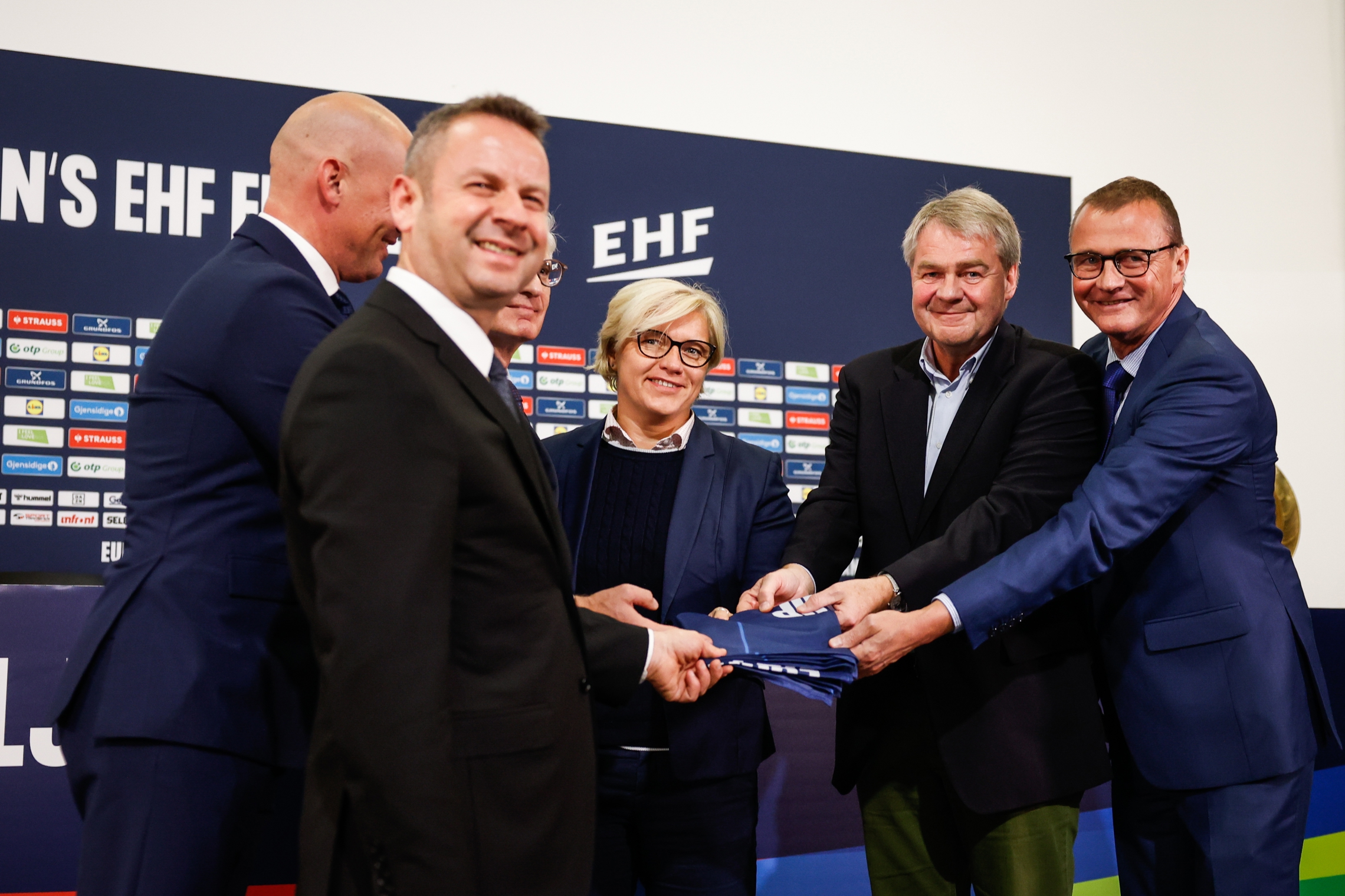 So hatte die Schweiz auch am Final-Wochenende, welches mit dem Titelgewinn der Norwegerinnen gegen Dänemark endete, ihren Auftritt. Bei der Abschluss-Pressekonferenz der diesjährigen EHF EURO wurde traditionell die EHF-Fahne an die kommenden Gastgeber in Ljubljana übergeben. Dabei wurde auch das offizielle Logo der EHF EURO 2024 der Frauen präsentiert, das die Farben der drei Gastgeberländer enthält und einen Ball zeigt, der gerade im Netz landet (siehe Bild unten). Als Vertreter für die Schweiz war EHF-EURO-2024-Projektleiter Roger Keller (rechts im Bild oben) in Ljubljana vor Ort.