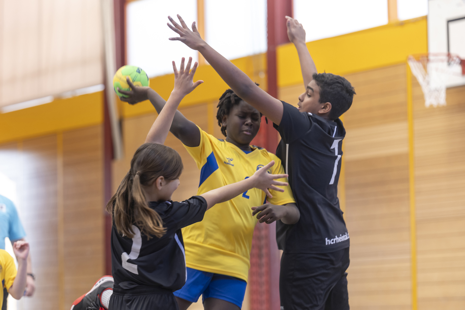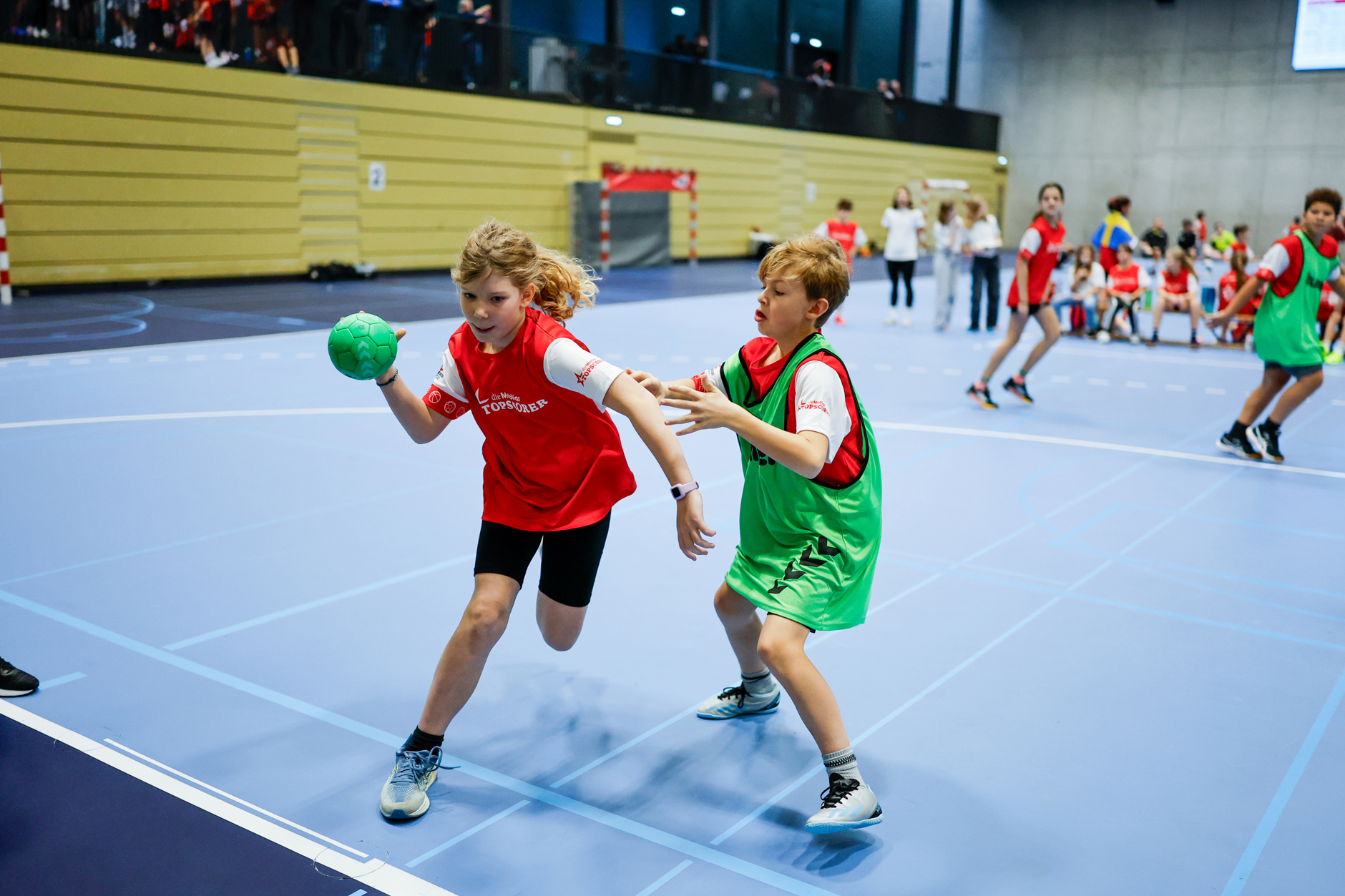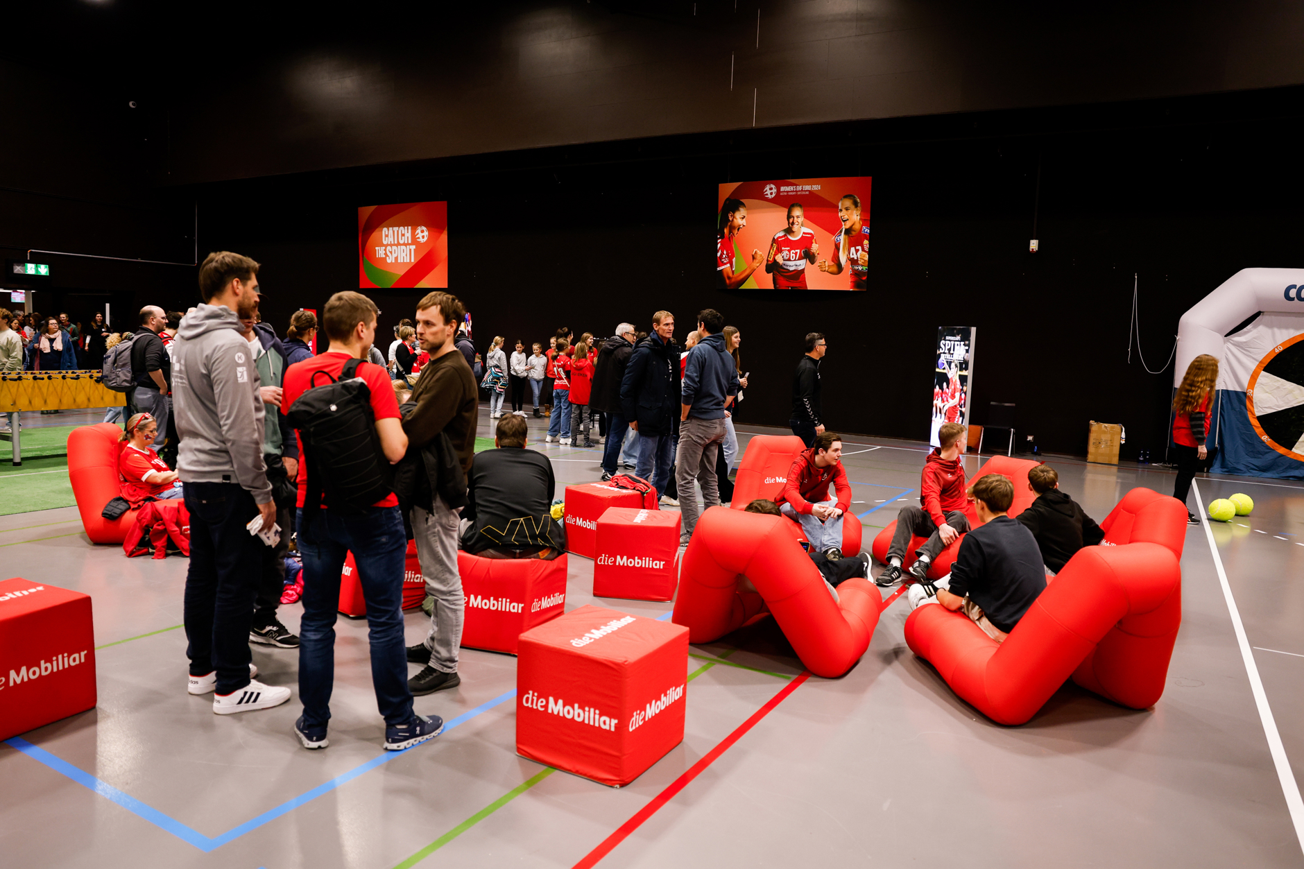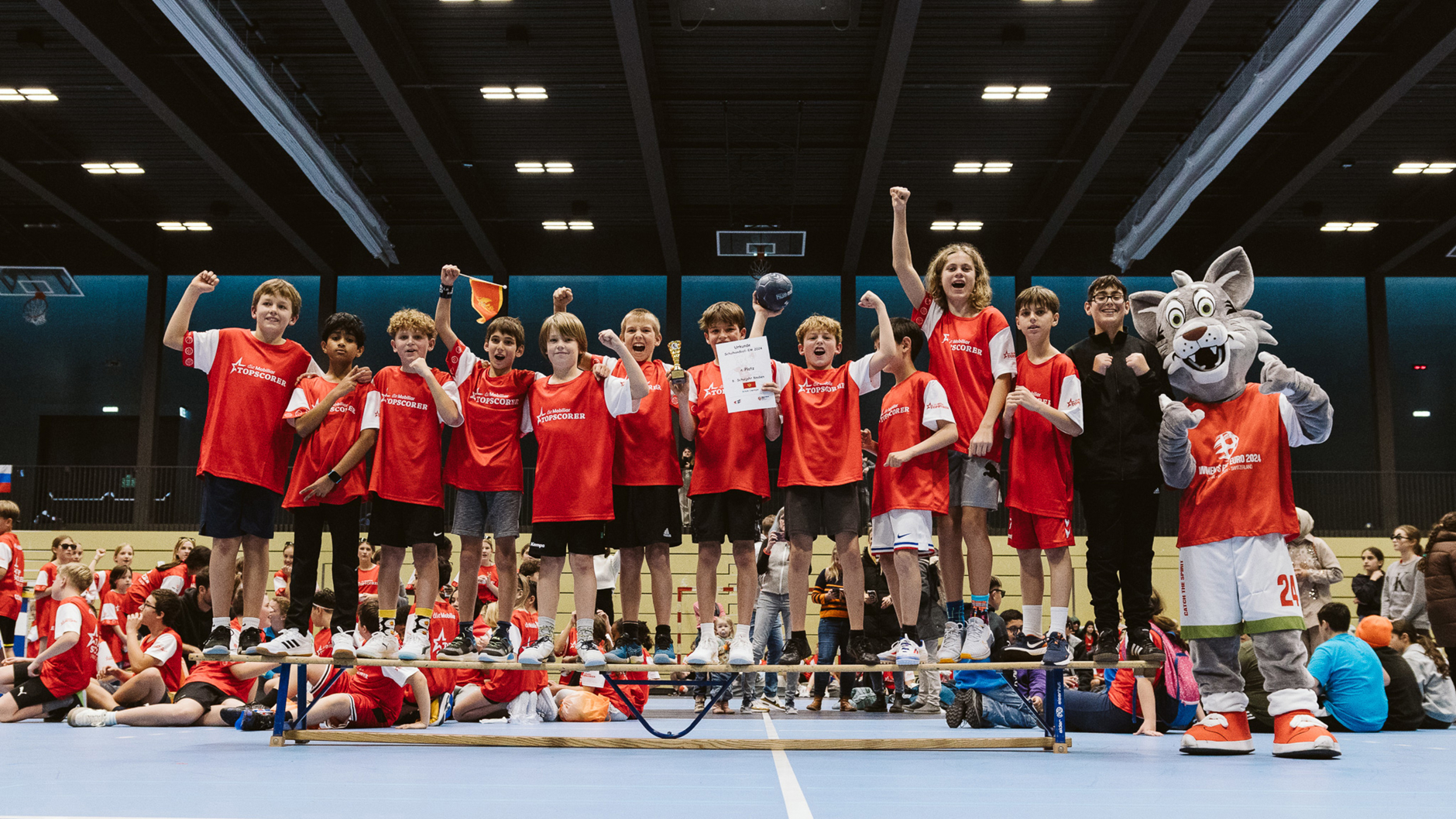 Alors que les derniers préparatifs pour la journée d'ouverture du championnat d'Europe sont en cours dans la St. Jakobshalle, près de quarante classes de Bâle et de la région disputent leur championnat d'Europe de handball scolaire. Après les premiers matchs, la mascotte du championnat d'Europe, Catchy, remettra leur coupe aux équipes gagnantes.
