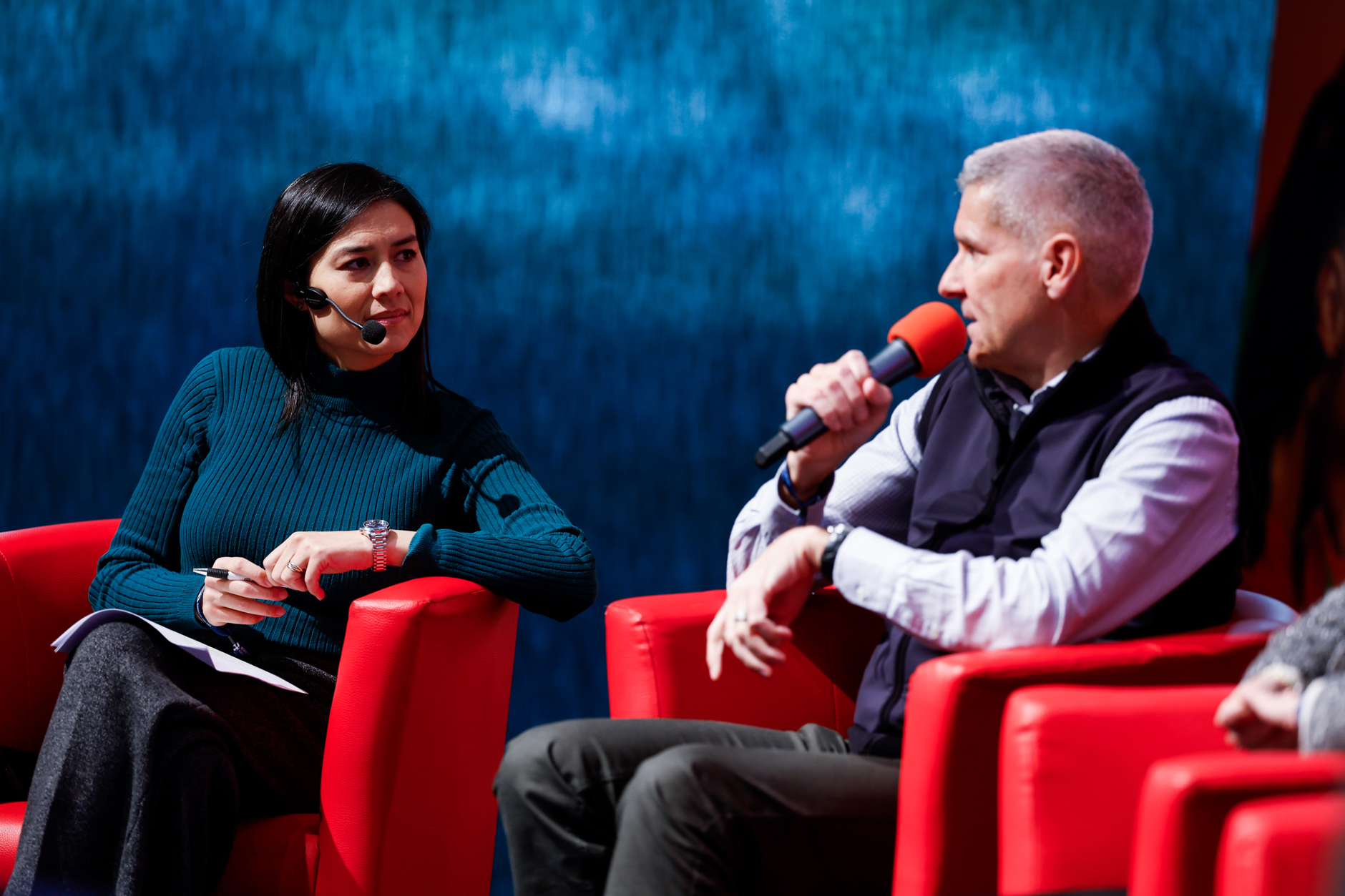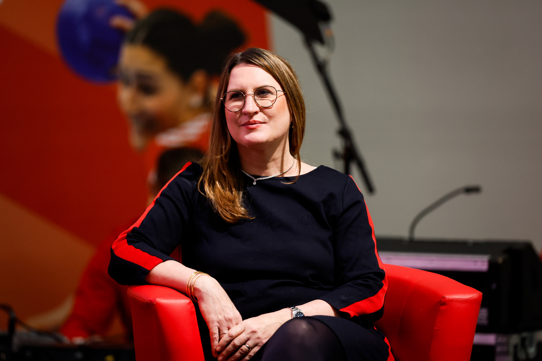 La table ronde dans l'espace VIP aborde le thème «Le sport aujourd'hui et il y a 50 ans». Ruth Metzler-Arnold, présidente fraîchement élue de Swiss Olympic et ancienne conseillère fédérale, y participe.